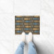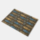 Um padrão de abstrato nos anos 50 com peixes e bolhas em castanho e azul.