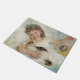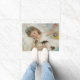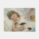 Este design apresenta uma pintura do artista francês Émile Munier (1840-1895), que foi um estudante de William-Adolphe Bouguereau (1825-1905). Mostra uma menina bonita segurando um ornamento sendo usado como brinquedo para provocar um gato de estimação. A garota está segurando o gatinho fofo em seus braços. Ela adora claramente a criatura pequena. A menina está vestindo um vestido branco, enquanto ela repousa sob lençóis de seda, e ela tem um arco azul em seu cabelo louro. A menina está sorrindo alegremente e o gatinho está olhando para cima para o brinquedo em sua mão. O título original francês da pintura era "Petite fille et chat", que simplesmente significa "Little Girl and cat", e foi pintado em 1882.