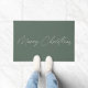 Esta elegante porta de férias simplesmente mostra a frase Feliz Natal em caligrafia moderna num fundo verde empoeirado.