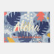 Via azul indigo. Sombras de indigo azuis lavados constituem o fundo dessa impressão com sotaques de azul marinho, azul denim, coral vivo, ocre e creme. É hora do verão... o ano todo. Nossa abstrato impressão tropical moderna apresenta folhas monstera e outras formas orgânicas. Este impressão é excelente para decoração tropical, dormitórios, áreas, casas de praia e muito mais. Este design vem em várias cores.