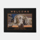O tapete da porta mostra uma cabeça de fotografia de perto de um chocolate Labrador Retriever deitado. A imagem é enquadrada por finas linhas marrons que correspondem à cor do conselho sob a cabeça do cão. O texto dentro dos quadros diz "Labrador Retriever" e em uma segunda linha "boa naturada...amando...leal". Personalize a mensagem superior com um nome, deixe-a como está, remova-a ou edite usando a ferramenta design para selecionar um estilo de fonte, tamanho e cor desejados.