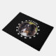 O design personalizável de modelo de foto de animais de estimação da Destei apresentando algumas impressões de pata de cão nas bordas e uma área de texto personalizável no topo que agora diz: "Bem-vindo". A foto é colocada no meio em forma redonda junto com uma borda branca. A cor de fundo é preta e a pata do cão é impressa e a cor do texto é branca. Você pode, no entanto, mudar a cor do plano de fundo, a pata imprime a cor e a cor do texto para qualquer outra cor, se desejar.