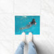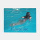 Modelo fêmea de cabelos negros nadando em um belo e azul mar para personalizar, personalizar mudando para seu nome