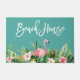 Escuro de Pincel Moderno, Floral Tropical de Watercolor com Matriz de Porta de Praia Flamingo Rosa