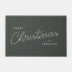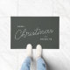 Um tapete de porta de na moda com tipografia moderna e manuscrita em branco numa cor verde de cinza profunda. O nome pode ser facilmente personalizado para um toque pessoal. Um design de natal simples, minimalista e contemporâneo para destacar esta temporada de festas!