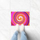 Aqui está um design artístico moderno de boas-vindas em círculos geométricos ousados e coloridos design que se parece com um design doce pirulito. Uma nova maneira de limpar seus pés e receber convidados para sua casa. Projetado para uma entrada de dormitório, porta de casa ou quarto para crianças.