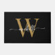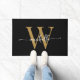 Tapete Personalizado de Entrada com Nome Inicial Monograma Preto e Dourado Moderno Elegante e Glamuroso. Este design apresenta um primeiro nome em uma fonte de letra manuscrita swash tail bonita (ou tipografia) com monograma inicial em dourado e branco sobre preto. Ótimo presente feminino e sofisticado para aquecimento de casa, também para aniversário, casamento, chá de noiva, aniversário de casamento, despedida de solteira e É para a garota que gosta de coisas minimalistas limpas.
