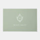 An elegant sage green and white design with the monogram initial in a vintage crest. The crest and the initial are white, the background is sage green. Under the crest, there is the name in white caps.