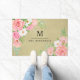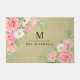 Belas rosas, tulipas, anêmona, flores cosmos com folhas e galhos formando buquês ricos. Toneladas de rosa, pêssego, verde, turquesa. Trabalho de arte de aquarela de arte. Monograma e nome personalizado.