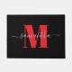 Crie o seu nome personalizado e monograma de porta para o quarto dela. A cor preta do plano de fundo pode ser personalizada. Monograma contemporâneo vermelho, preto e branco com design de caligrafia elegante com estilo de assinatura pode ser personalizado.