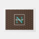 Esta linda porta apresenta um padrão de repetição simples de uma luz cintilante em forma de estrela e etiqueta central quadrada em um fundo marrom de chocolate para segurar seu nome e monograma. A paleta de cores moderna faz uma escolha popular para adicionar ao seu decoro de Natal. Procure ID594 para ver todos os produtos de coordenação para esta combinação de design.