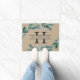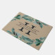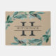 Uma porta botânica elegante em ponto morto que o bege apresenta seu monograma inicial de solteiro com seu nome de família sobreposto, enquadrado por folhas de aquarela e folhagem em tons ricos de verde.