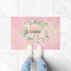 Lindo tapete de monograma, apresentando um lindo nome em letra cursiva branca com uma inicial dourada complementar que é emoldurada por uma delicada guirlanda de rosas em estilo aquarela sobre um fundo de geodo de ágata rosa. Personalize para criar um presente especial e único para guardar! Criado por Thisisnotme©