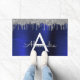 Folha azul de prata e Marinho Folha escamosa metálica Brilhante Lâmina esmagada Monograma e Porta Inicial da Casa. Isto faz o doce e perfeito aniversário de 16 anos, casamento, chá de panela, aniversário, chá de fraldas ou festa de solteira presente para alguém que ama luxo de luxo e estilos quíticos.
