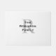Este tapete de porta pode ser na cor de fundo que você escolher. O fundo padrão do tapete é branco; o nome da família é preto, o monograma é fonte clássica cinza claro "crie o seu próprio". Um ótimo presente para casamento, aniversário ou mudança. Todos os direitos reservados © 2024 Alan & Marcia Socolik.