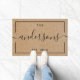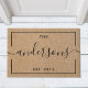 Tapete de entrada personalizado com design natural e preto moderno rústico com nome da família personalizado em caligrafia manual moderna.