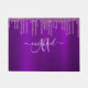 Girly Purple Driping Glitter Brush Metal Monograma Doormat, Este tapete de porta tem um grande monograma de script de lavanda e seu nome em branco para personalizar um belo fundo metálico roxo e brilhante escovado, com uma borda de falso brilho. Personalize a porta com o nome de sua escolha para fazer alguém se sentir especial. Faz um presente divertido para aniversários ou Natal... Não há quantidade mínima do pedido. Projetado apenas para você por design1!