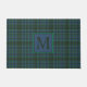 Este tapete de porta monograma pré-filmado apresenta uma xadrez clássica em verde e azul. Personalize o monograma com sua escolha inicial. presente divertido para o primeiro apartamento ou casa.