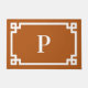 Borda retangular geométrica com estilo chave grega decorativo, em estilo branco-escura, com formato de abóbora, queimada em laranja de 24" x 36" com um monograma serif moderno. Personalize este design editando o branco ou o preto com sua opção de cor favorita. Altere o estilo, o tamanho ou a cor da fonte, conforme necessário. Combine esta trendy shade à sua moderna decoração doméstica minimalista. Temos uma fronteira da chave grega para o tamanho do tapete de porta mais pequeno. Envie uma solicitação se precisar de outro presente aqui no mercado com uma área de impressão diferente.