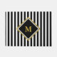 Você pode personalizar o grande monograma (não de folha) que está no dentro central de uma borda de diamante. O fundo tem faixas verticais pretas e brancas.