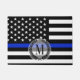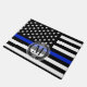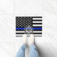 Linha azul fina bandeira americana de estilo. Uma bandeira americana preta do branco e dos azuis cobaltos simbólica da polícia. Isto é caracterizado em uma esteira de porta feita sob encomenda.