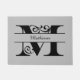 Neste tapete de porta distinto, o seu nome está escrito no centro de uma letra florescente dividida M. O nome e a letra estão a preto e são mostrados num fundo de cinza médio a leve. Você pode alterar a cor do plano de fundo, se quiser, escolhendo Editar Design. Você também pode alterar a fonte do nome. Elegância para a sua entrada!