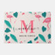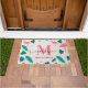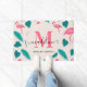 Monograma Moderno Folhas Tropicais Rosa Quente, Flamingo Doormat