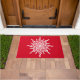 Porta musical única para músicos e amantes de música nas férias de inverno. Derreter clefs brancas formam um floco de neve feito de notas de clef triplas. Use o modelo de texto para adicionar um inicial ou um monograma ao meio do design ornamental. Edite para mudar o fundo vermelho natalino, a borda do círculo central e a fonte elegante e antiga para qualquer cor que desejar. ♡ Idyllfire