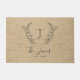Nome monograma da família e ano elegante da casa rustica de campo estilo ochre beige burlap doormat. +++++ Um presente moderno de manutenção para casamentos, aniversários, exércitos domésticos, Ação de Graças, Natal ou qualquer outra ocasião.