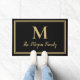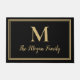 Um monograma personalizado moderno e elegante na moda em preto clássico e Dourado Duplo Fronteiras. Você pode personalizar esta simples fronteira negra e Dourada e dupla com o sobrenome da sua família em script e um monograma de estilo serif inicial.