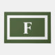 Aproxime a porta da frente ou o pátio com esta porta externa verde escura monograma personalizada. Este é um design moderno simples para decorar sua varanda ou pátio da porta frontal e também pode ser usado em ambientes fechados. Tem uma grande letra branca e negrito no centro e um quadro de borda branca sobre fundo verde-oliva personalizável.