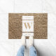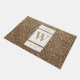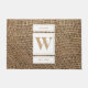 Uma textura de fundo rústica de burlap faux com um monograma inicial moderno que incorpora, nome e data estabelecida. Um design rústico com uma torção moderna. Personalize o monograma e faça dele seu.