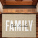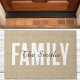 Juta russa tan faux burlap "Family" personalizado tapete de porta monograma. Adicione um toque de país fofo à sua entrada. Faz com que uma família excelente se mantenha. Clique no botão personalizar para personalizar a tipografia com seu próprio nome de família. Nota: a braçadeira neste design é uma textura falsa impressa.