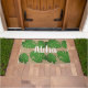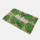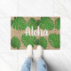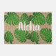 Folhas verdes tropicais pintadas digitalmente com a saudação "Aloha" - porta-mala com um bom e exótico verão, burlap parece fundo. Design por Alma Wad ,