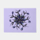 Porta floral gótica com uma legal e estranha ilustração mandala - desenho de tinta digital de uma flor estranha com monstros répteis com dentes afiados em cores preto, violeta e azul.