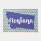 Silhueta estadual de Montana em azul com estrelas amarelas celebrando o "País Grande do Céu" em fundo de cóvron envelhecido