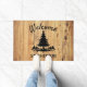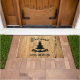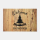 Porta projetada para a casa da montanha da família. Silhueta de montanhas e palmeiras, personalizada com seu nome familiar em um fundo de design de madeira rústica. Perfeito para o aluguel da sua casa/férias. Ou personalize seu texto para qualquer uso.