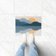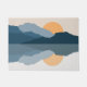 Abstrato de ilustração colorida do nascer do sol com montanhas azuis refletidas no lago