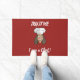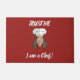 Cabeça de chef com chapéu, corcunda vermelha e texto personalizado.
