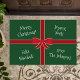 Saudações aos seus convidados com este belo tapete de porta de Natal. O tapete é verde-escuro e apresenta Cartões de natal em inglês, francês e espanhol: Feliz Natal, Joyeux Noel e Feliz Navidad. Há também um lugar para personalizar com seu sobrenome familiar. Todo o texto é editável, portanto você pode escolher outros idiomas ou saudações, de acordo com sua preferência. Esta porta faz um excelente personalizado para o aquecimento doméstico, chá de panela, casamento, aniversário, Natal ou outro presente de feriado. Também constituiria um presente pessoal especialmente bonito para um professor de língua estrangeira, um casal ou família intercultural casados, ou para qualquer pessoa interessada em viagens e experiências estrangeiras.