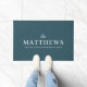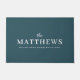 Um tapete fotográfico moderno na moda com o seu sobrenome em tipografia clássica, emparelhado com uma letra manuscrita em branco, uma linda cor azul verde-verde-negro no verso. Uma design divertida e mínima para se destacar da multidão nesta temporada de natal!