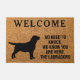 Bem-vindos convidados com esta engraçada porta Labrador! "Não precisa bater, nós sabemos que você está aqui." Os Labradores. Porta-Boas-Vindas - Matriz do Chão do Cachorro Coral natural e design preto com labrador. COPYRIGHT © 2020 Judy Burrows, Black Dog Art - Todos Os Direitos Reservados.