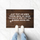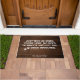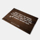 Todos com cachorros sabem que quando a campainha toca eles ficam loucos. Este tapete diz: "Envie-nos uma mensagem quando você estiver aqui. Não precisa bater e envolver os cães." Este tapete tem um fundo de madeira rústico.
