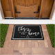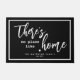 Esta porta contém um texto branco que diz: "Não há lugar como casa" junto com um pequeno coração e seu nome personalizado, data estabelecida ou outro texto.