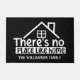 Esta porta divertida apresenta a imagem de texto "Não há lugar como casa", e personalizada com seu nome de família em um fundo preto. Perfeito para acolher familiares e amigos.