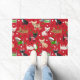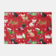 Cães bonitos de Natal Chihuahua com casacos pretas, bronzeadas, creme, azuis e cinzas vestidas de férias festivas, chapéus de Santa e blusões de argyle com padrões dispersos de Enfeites de natal.