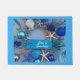Adicione esta maravilhosa porta inspirada na costa ao seu decoro de férias com tema tropical. A foto na porta mostra estrelas-do-mar, peixes riscados, cavalos-marinhos, conchas de moluscos, corais e bolas ornamentais em vários tons de prata, azul e branco. A placa diz "Seas 'n Saudações." A porta do templo da praia está disponível em dois tamanhos, e é perfeita para a varanda, lanai, camper ou casa de praia. Fotografia de Glenda Motsavage, um escritor e autor viagem na Flórida. Imagem do Museu de Arte Orlando, Festival de Árvores.
