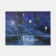 Uma noite de inverno, olhando por cima de um portão flanqueado por duas árvores em uma cobertura de neve entre colinas rochosas, cheias de pequenas fazendas, sebes e muros de pedra. Um brilho quente brilha de muitas janelas, luzes de Natal brilham sobre árvores e cercas, e uma estrela de Natal vigia do telhado de uma casa de manor, tudo sob os raios de uma lua de cheio.