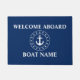 Boas-vindas a bordo Anchor mostra seu nome de barco Marinho de porta azul e branco