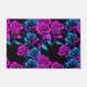Neon Colored Roses In Shades Of Electric Blue And Pink On A Dark Black Background With A Futuristic Bold Style